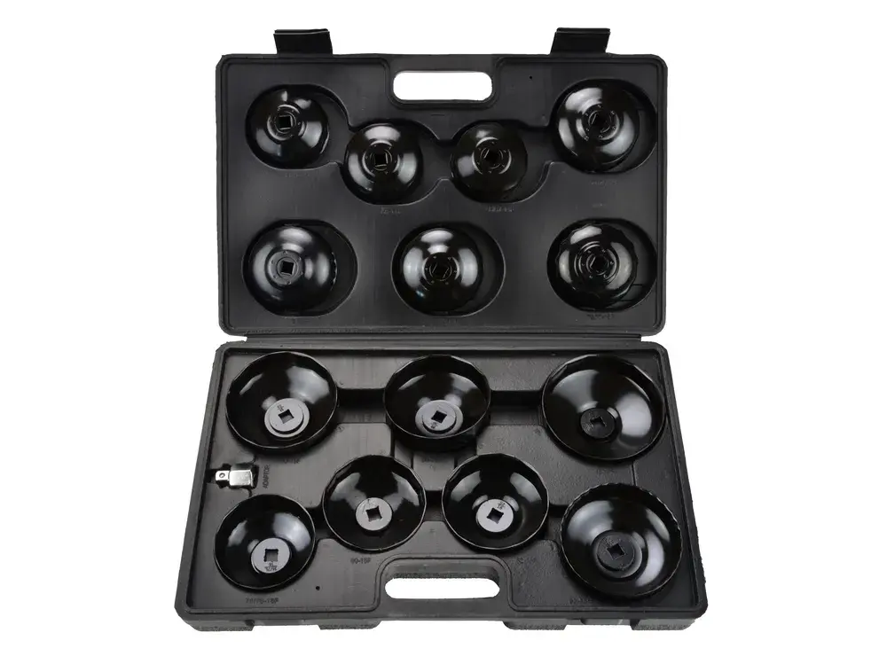 Sada 14 hlavíc na odskrutkovanie olejových filtrov.