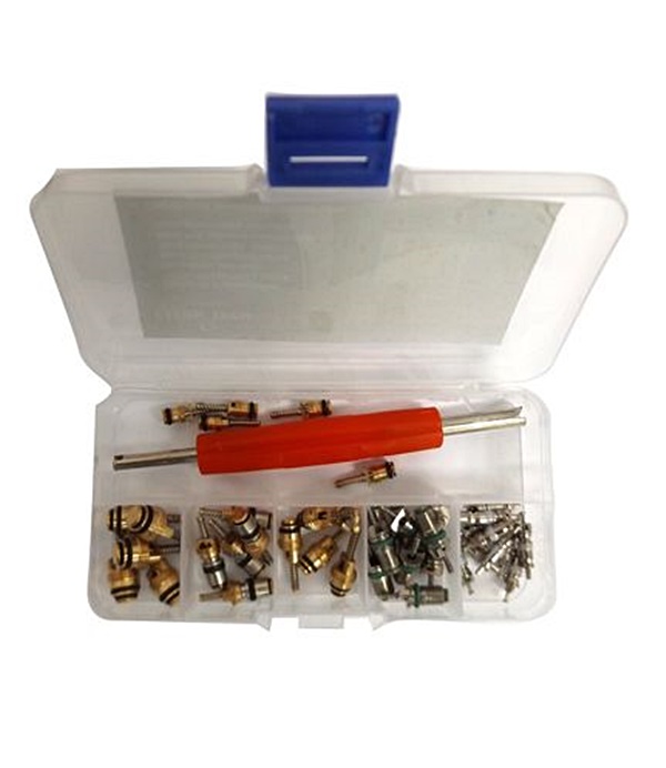 Servisné ventily sa používajú pri servise a výmene klimatizácie. Sada bola umiestnená do plastovej nádoby s praktickými priehradkami.