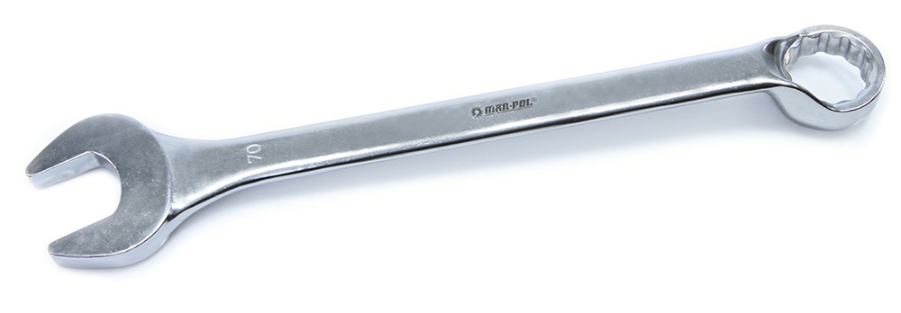 Kombinovaný kľúč MAR-POL, veľkosť 70 mm, je určený pre prácu v náročných podmienkach, určený pre profesionálne mechanické a autoservisy. Ideálne pre veľké stroje. Kľúč je vyrobený z prvotriednej Cr-V ocele a spĺňa normy DIN 3113. Tieto nástroje sa vyznačujú nebývalou odolnosťou a vysokou kvalitou spracovania.