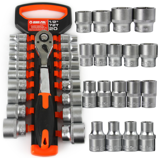 MAR-POL M58205 Nástrčné kľúče 1/2" 20ks 8-32mm /KLIP/Skladom21,10 EUR/ ks17,15 EUR bez DPH