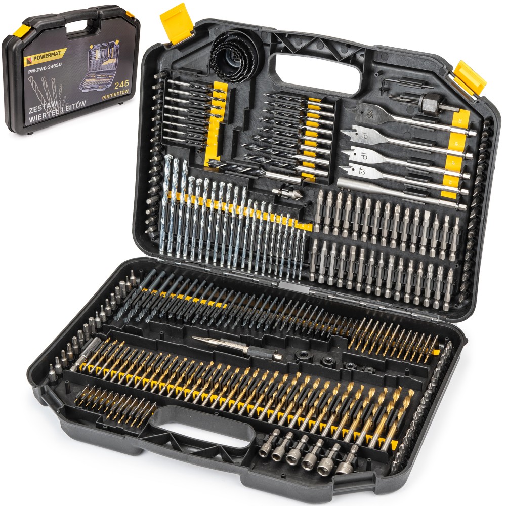 Powermat PM-ZWB-246SU Sada náradia 246 ks vrtáky, bity na kov, betón, drevoskladom43,30 EUR/ ks35,20 EUR bez DPH