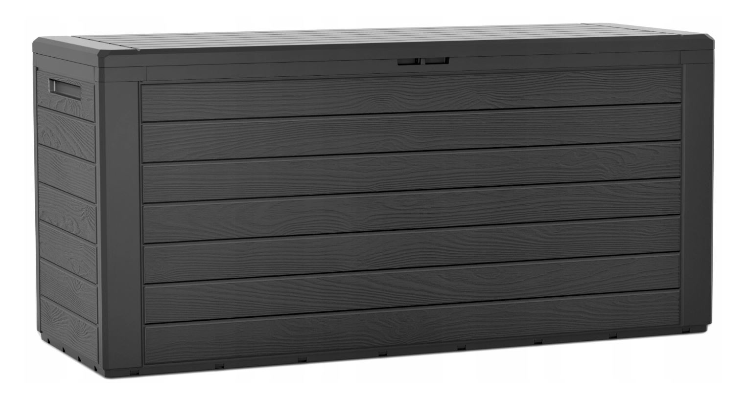 Záhradný box je vyrobený z odolného plastu s imitáciou prírodných drevených dosiek. Je vhodný na balkón, terasu, do záhrady, do garáže alebo do dielne. Chráni predmety pred prachom a dažďom.