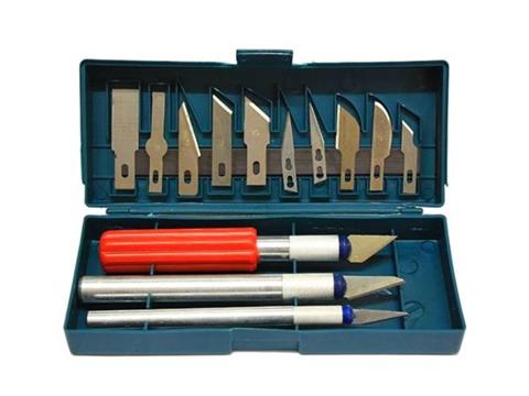 Sada modelárskych skalpelov urcench pre najjemnejsie rezacie práce, napriklad pri stave modelov. Sada je ulozená v plastovom boxe vybavenom magnetickou listou pre uchytenie práve nepouzivanych cepeli.