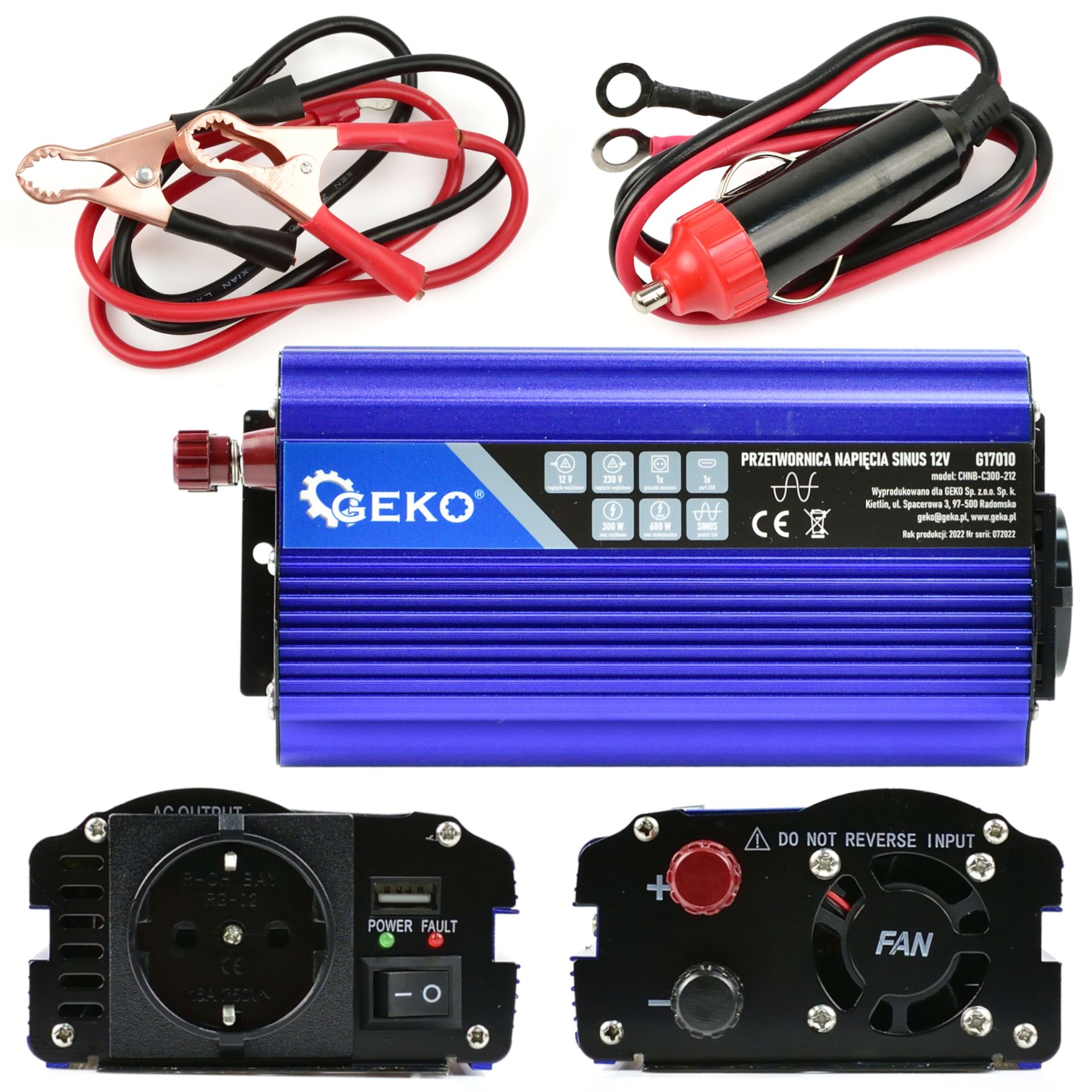 GEKO G17010 Menič napätia pre autá, člny 12V 230V 300W/600Wskladom54,60 EUR/ ks44,39 EUR bez DPH