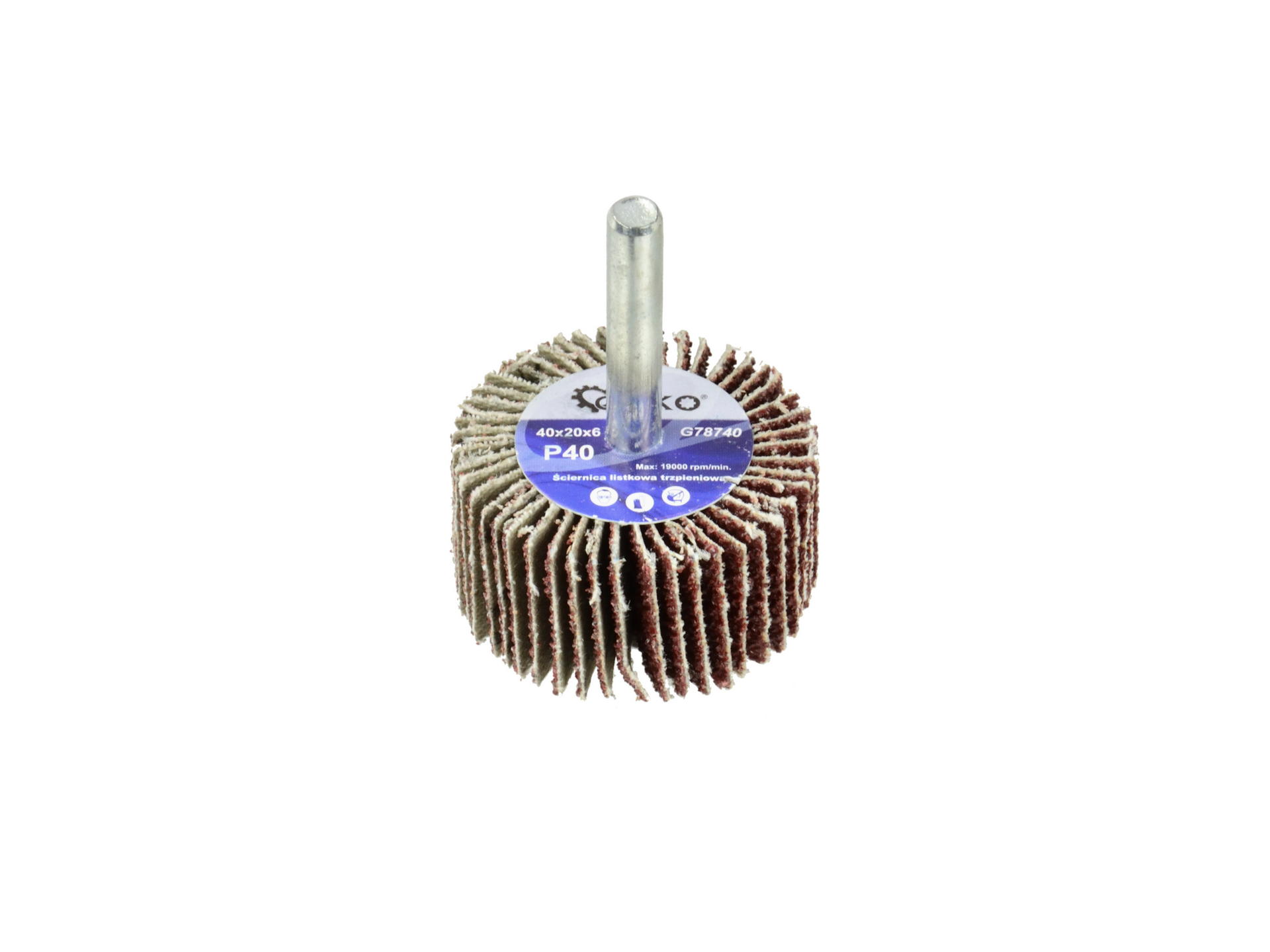Brúsny kotúč bol vyrobený pomocou lístkov z bavlnených vlákien s brusivom vo forme oxidu hlinitého viazaného syntetickou živicou. Listy sú pevne pripevnené k vretenu s priemerom 6 mm. Ideálne pre brúsenie dreva, kovu, plastov atď.