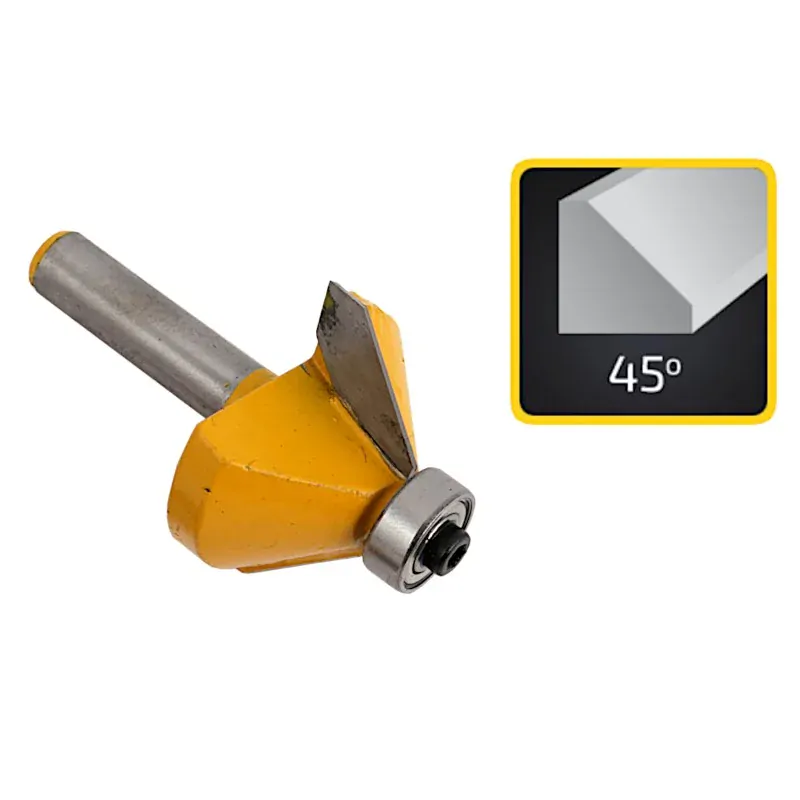 Fréza na drevo FRXd je určená na presné zrážanie hrán rôznych druhov dreva a drevu podobných materiálov. Vybavený spodným ložiskom umožňuje jednoduché vedenie nástroja pozdĺž spracovávaného materiálu. Jeho dizajn zaisťuje rovnomerné a čisté 45° úkosy, čo je kľúčové pri vytváraní estetických spojov a povrchových úprav.