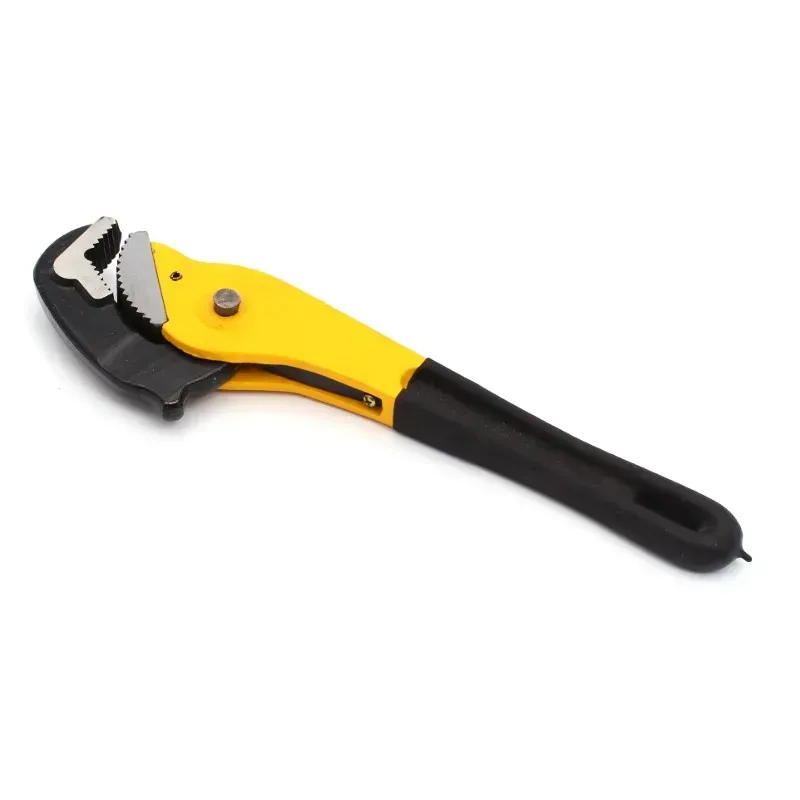 Univerzálny kľúč na rúry. Rukoväť je oceľový a čeľuste z uhlíkovej ocele, ktoré majú špeciálne navrhnutý profil umožňujúce samoupínanie čeľustí na odskrutkovanom potrubí. Kľúč nevyžaduje úpravu rozstupu čeľustí.
