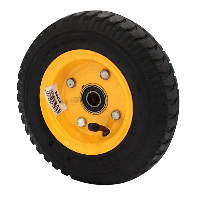 Koleso slúžiacie na zvýšenie mobility a funkčnosti plošinových vozíkov a iných úžitkových vozidiel používaných v skladových priestoroch. Koleso má kovový ráfik a nafukovaciu konštrukciu, ktorá zaisťuje tlmenie nárazov a pohodlné používanie aj pri plnom zaťažení. Produkt je určený na podporu pohybu a prepravy ťažkých nákladov v rámci skladov.