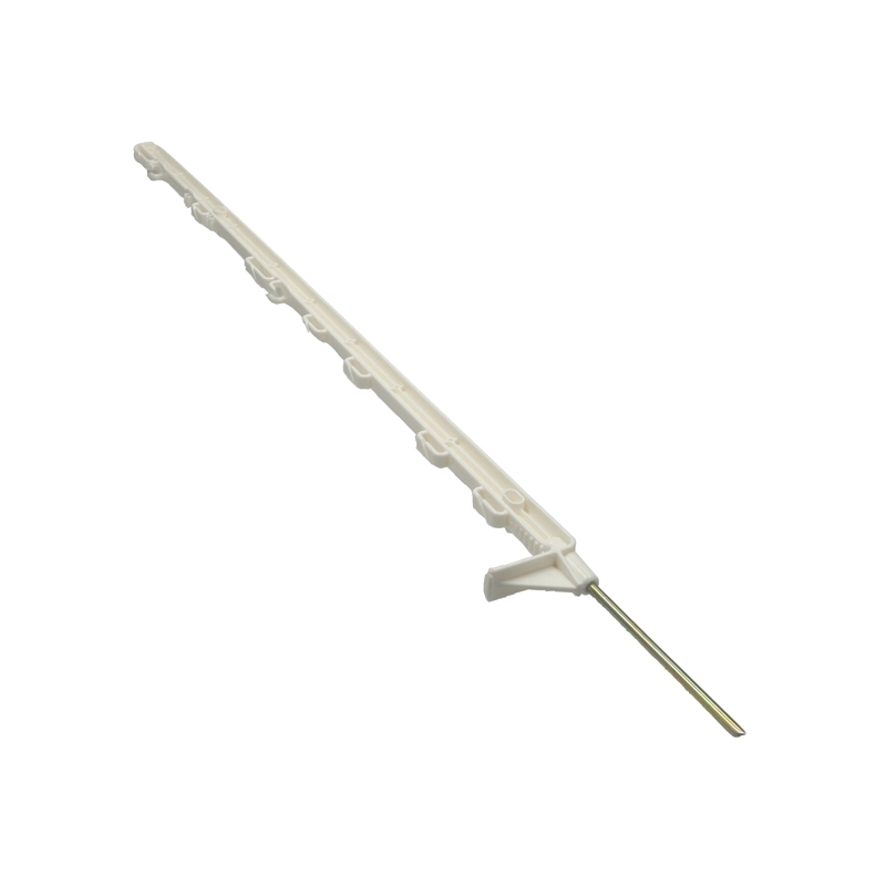 Stĺpik elektrického plotu s výškou 110 cm je spoľahlivým riešením pre stavbu elektrických plotov. Vyrobené z recyklovaného materiálu, vyznačuje sa svojou odolnosťou a ekologickým prístupom k výrobe. Jeho biela farba zvyšuje viditeľnosť v teréne, čo je kľúčové pre efektívne označenie oplotených priestorov. Vďaka konštrukcii hrotu je možné stĺpik ľahko a efektívne zatĺcť do zeme, čo značne uľahčuje montáž a demontáž plotu.