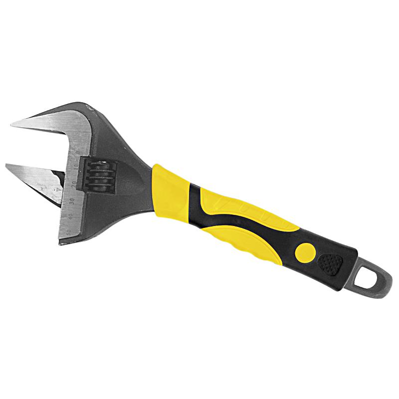 Vyrobený z chróm-vanádiovej ocele (Cr.V.), nastaviteľný kľúč so zväčšeným rozsahom otvárania čeľustí v porovnaní s tradičným modelom. Vďaka možnosti nastavenia sa stáva univerzálnym pre väčšinu veľkostí skrutiek. Ani pri maximálnom otvorení čeľuste nevypadnú.