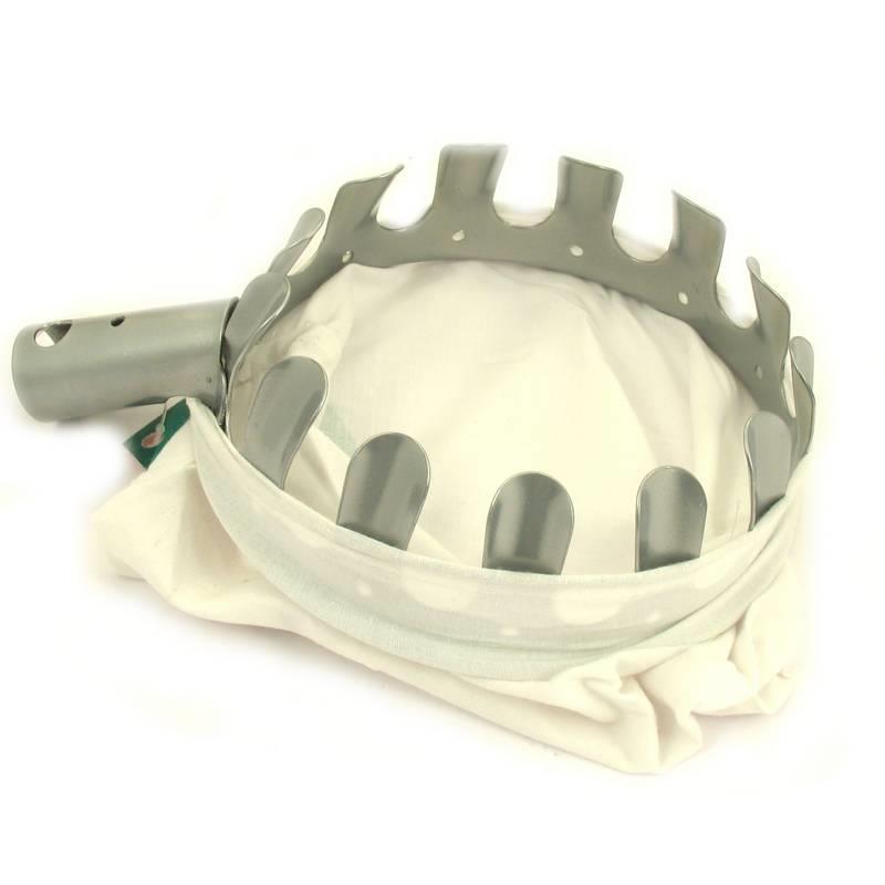 Zberač s látkovým vakom na zber ovocia zo stromov. Montáž na tyč.