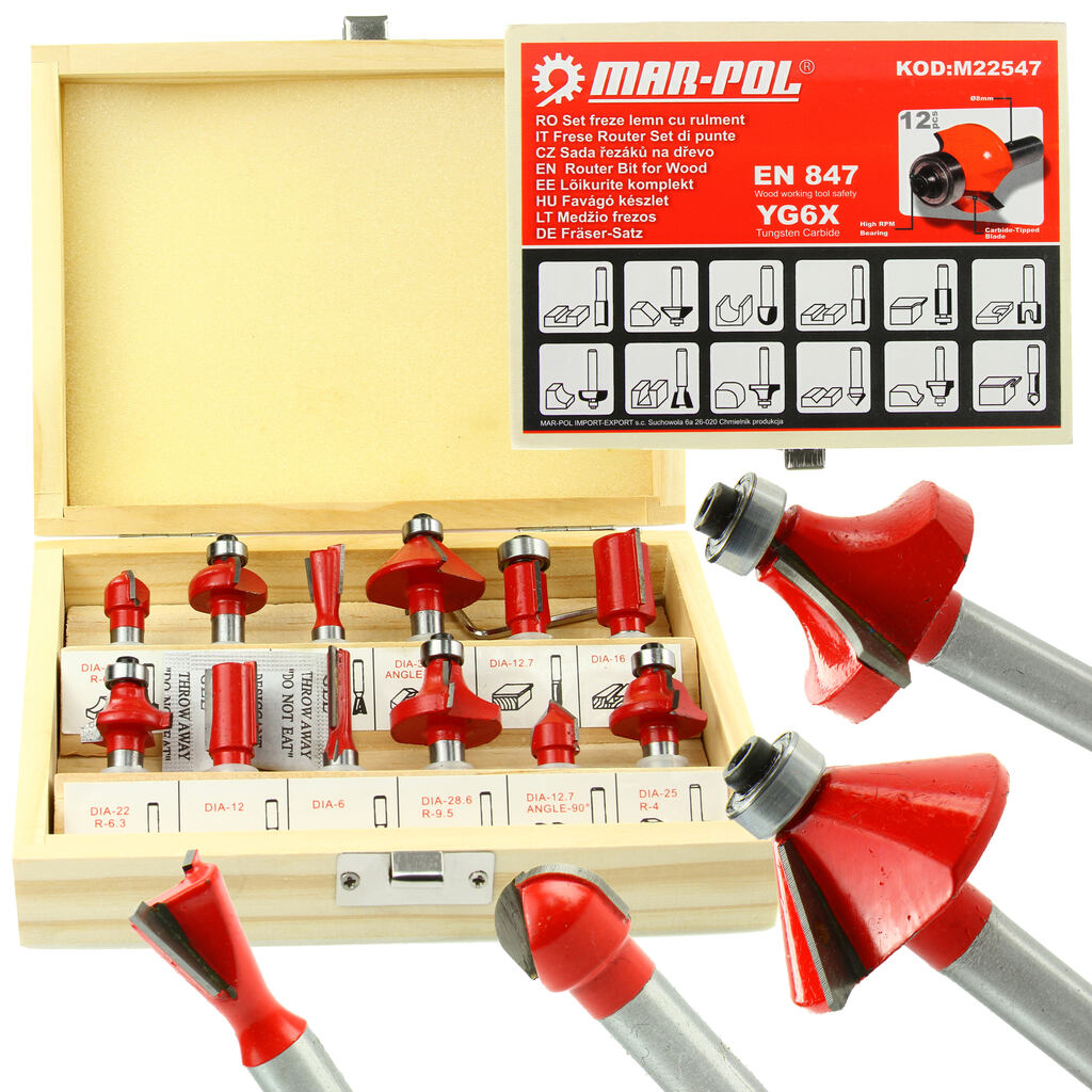 MAR-POL M22547 Frézy na drevo so stopkou 8mm 12ksskladom14,80 EUR/ ks12,03 EUR bez DPH