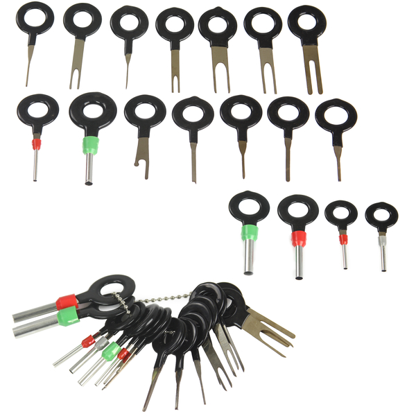 Sada 18 kľúčov na odstránenie kolíkov a konektorov. Užitočné na úpravy a opravy elektrických inštalácií v automobiloch, motocykloch, elektronike a domácich spotrebičoch atď.