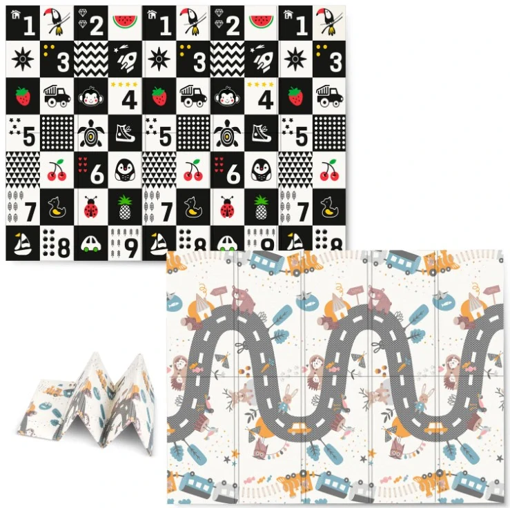 Skladacia penová podložka NUKIDO je vyrobená z veľmi kvalitného materiálu. Je odolná voči vlhkosti, má protišmykovú úpravu, vytvára tepelnú izoláciu. Preto je vhodná pre deti, ktoré sa učia pretáčať alebo sa plazia. Mäkká podložka môže zmierniť následky drobných pádov, keď dieťa skúša svoje prvé krôčiky alebo trénuje sedenie.