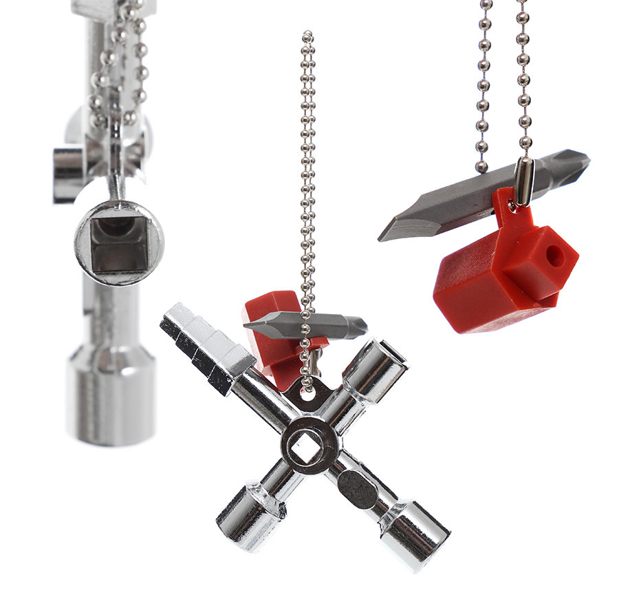 Univerzálna súprava obsahuje skrutkový kľúč na otváranie a zatváranie skríň a rozvádzačov. Krížový kľúč na skrine, ktorý je ideálny na skrine plynomerov, vodomerov, elektromerov, klimatizačných komponentov, uzatváracích ventilov, sieťových konzol atď. Súprava, ktorú musí mať každý inštalatér a údržbár.